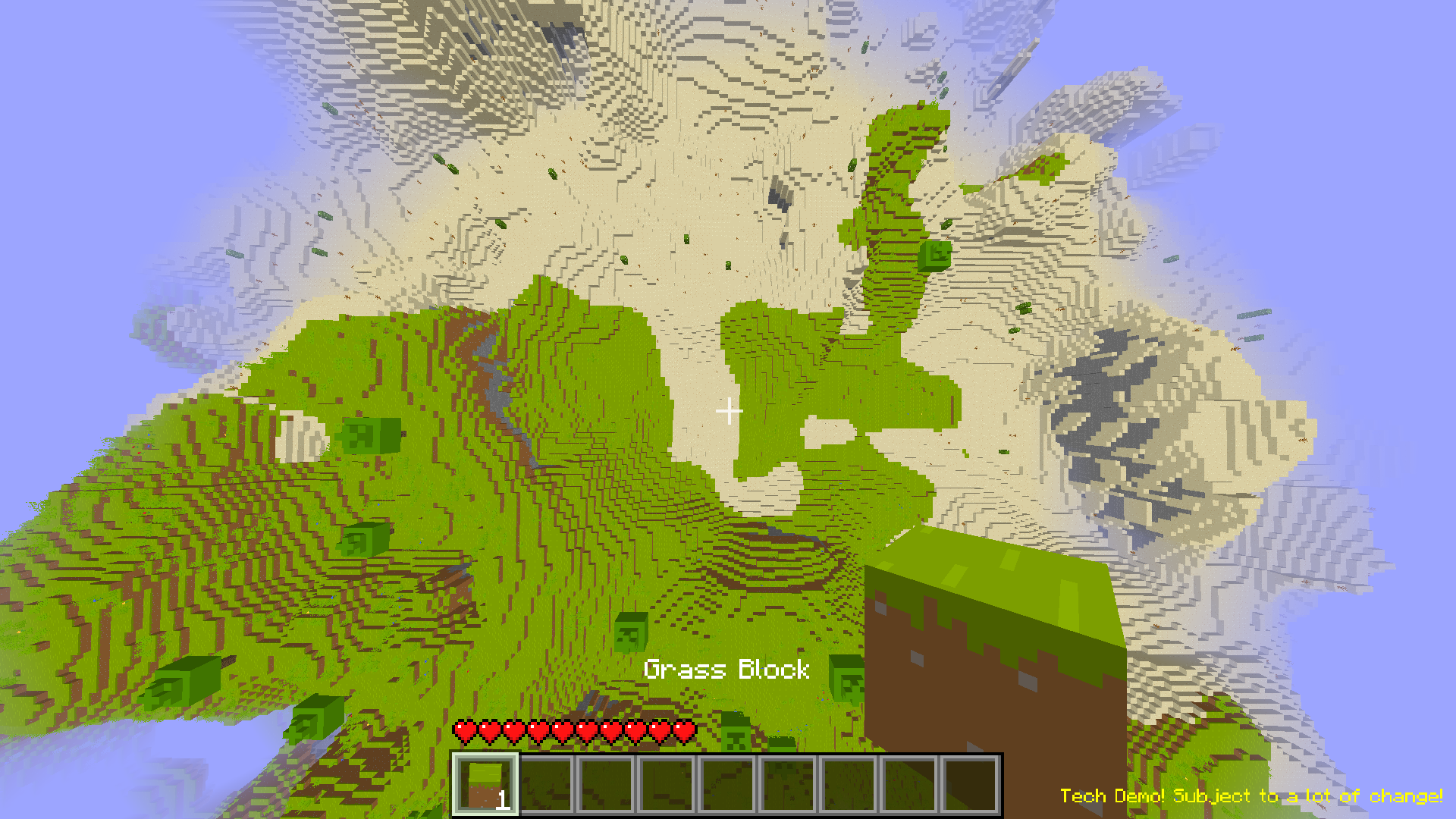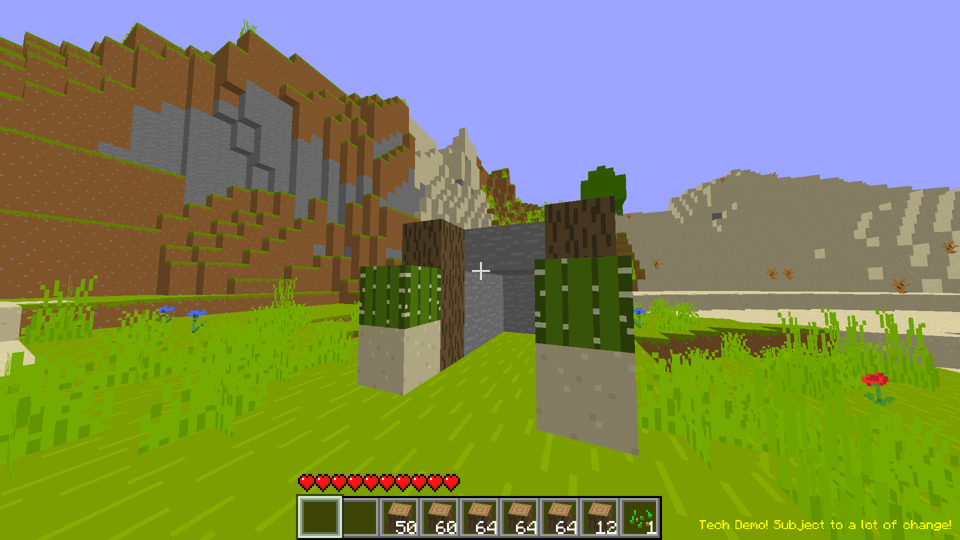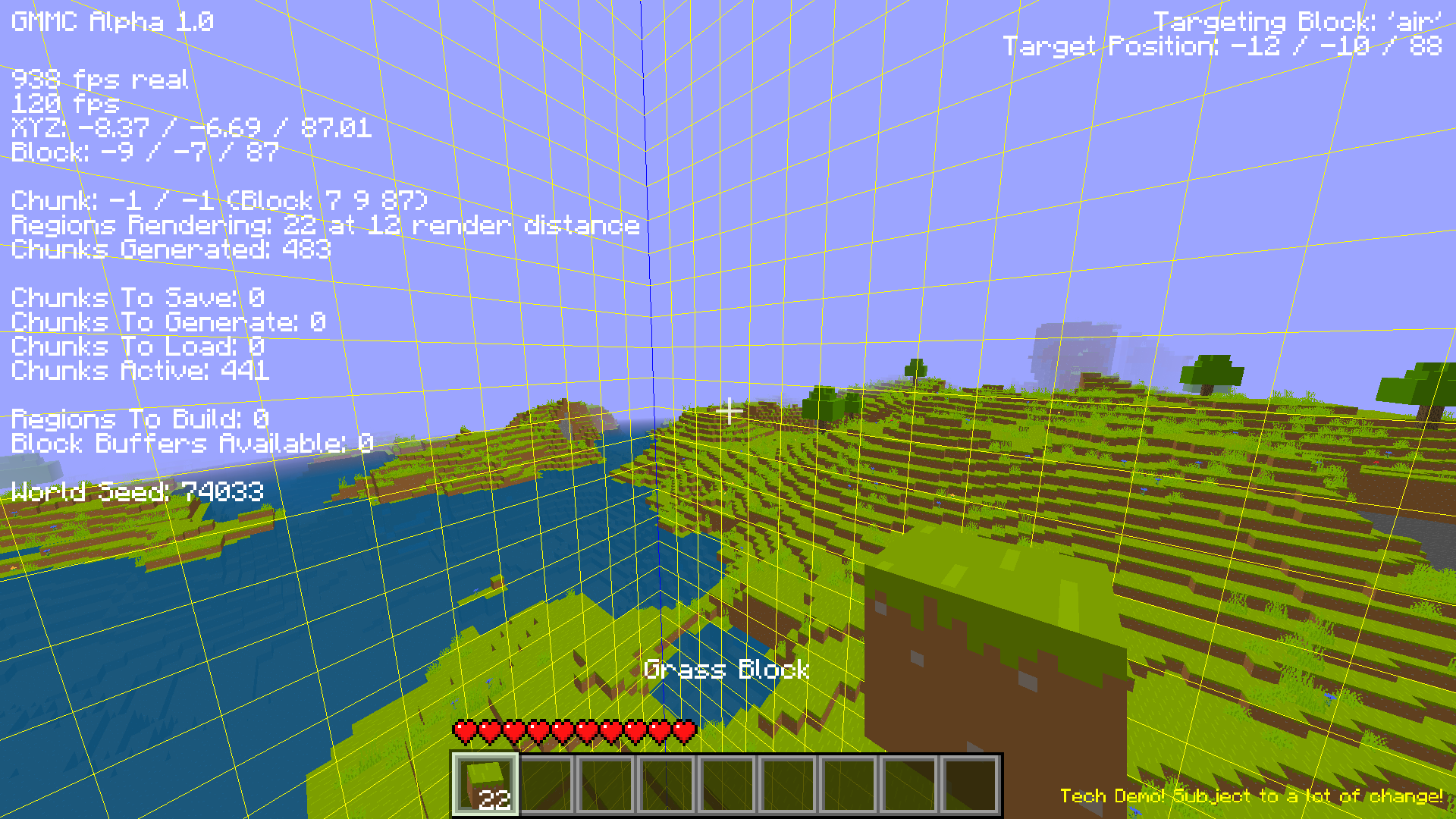 GMMC is very much a work in progress, there are lots of features that still need to be added, and bugs are inevitable. You can explore the infinite world, fly around, build and mine, and see the terrain generate, but it’s still early and experimental.